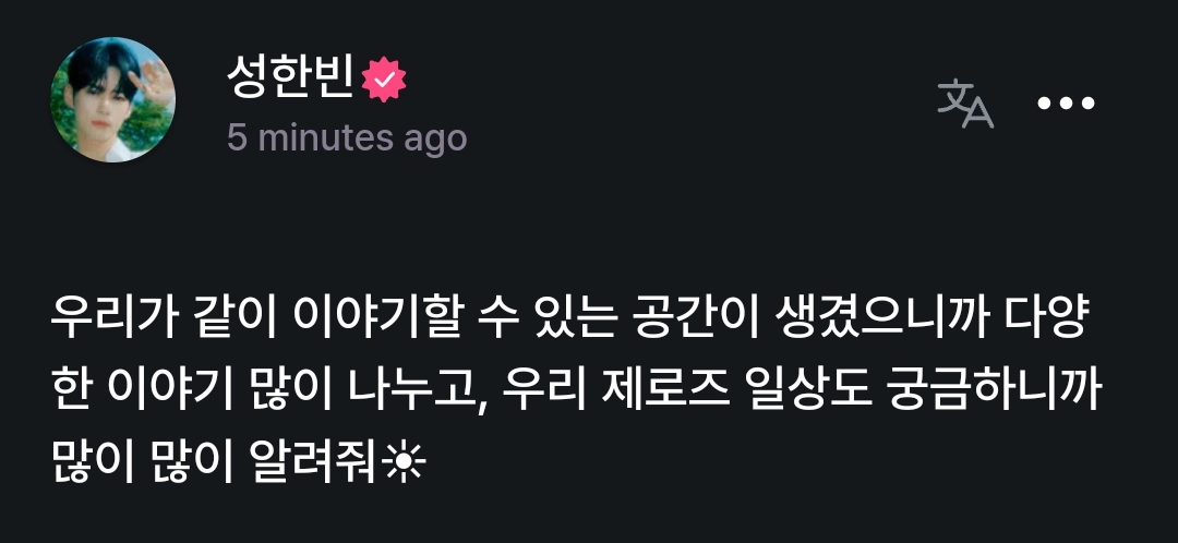우리가 같이 이야기할 수 있는 공간이 생겼으니까 다양한 이야기 많이 나누고, 우리 제로즈 일상도 궁금하니까 많이 많이 알려줘☀
