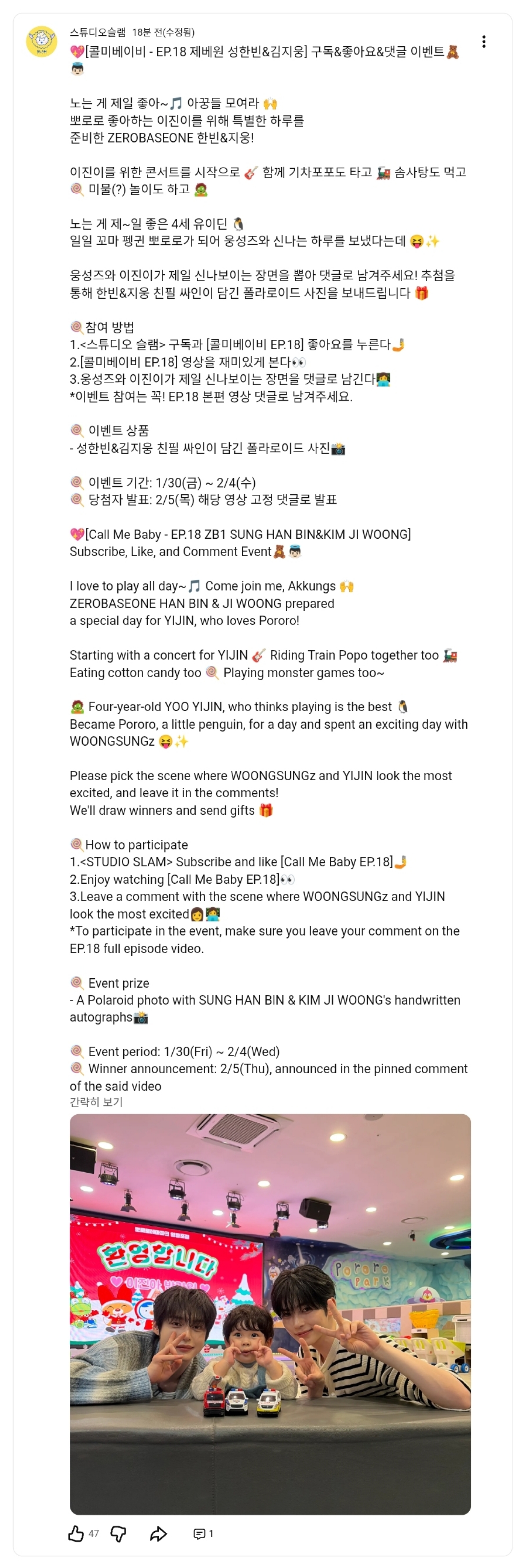 💖[콜미베이비 - EP.18 제베원 성한빈&김지웅] 구독&좋아요&댓글 이벤트🧸👼🏻
