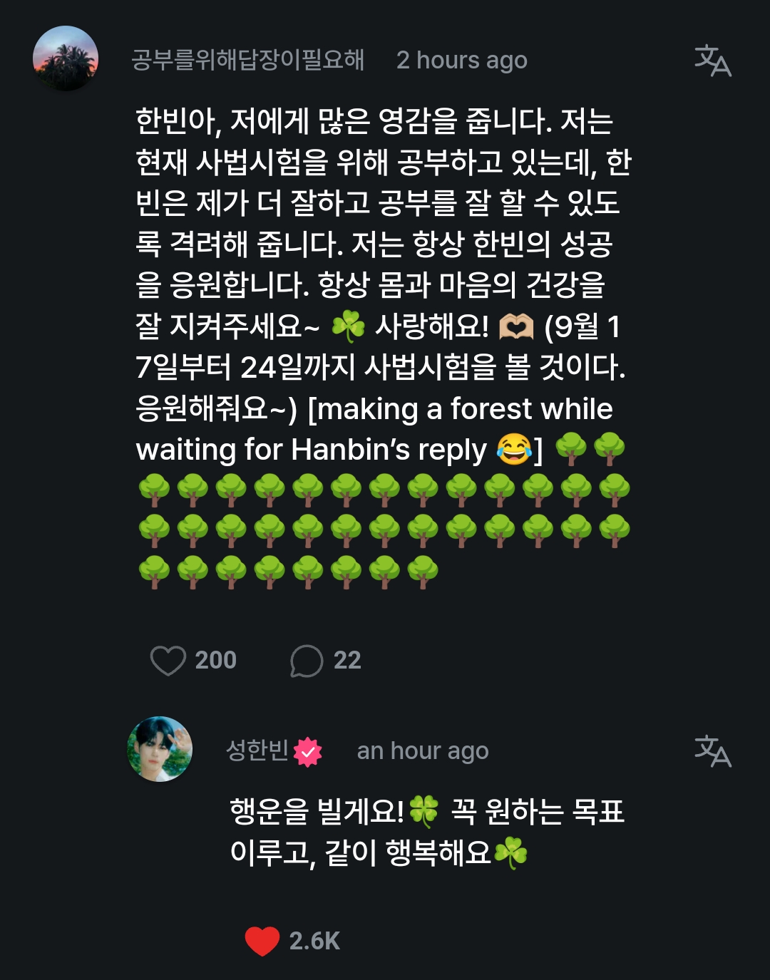 행운을 빌게요!🍀 꼭 원하는 목표 이루고, 같이 행복해요☘️