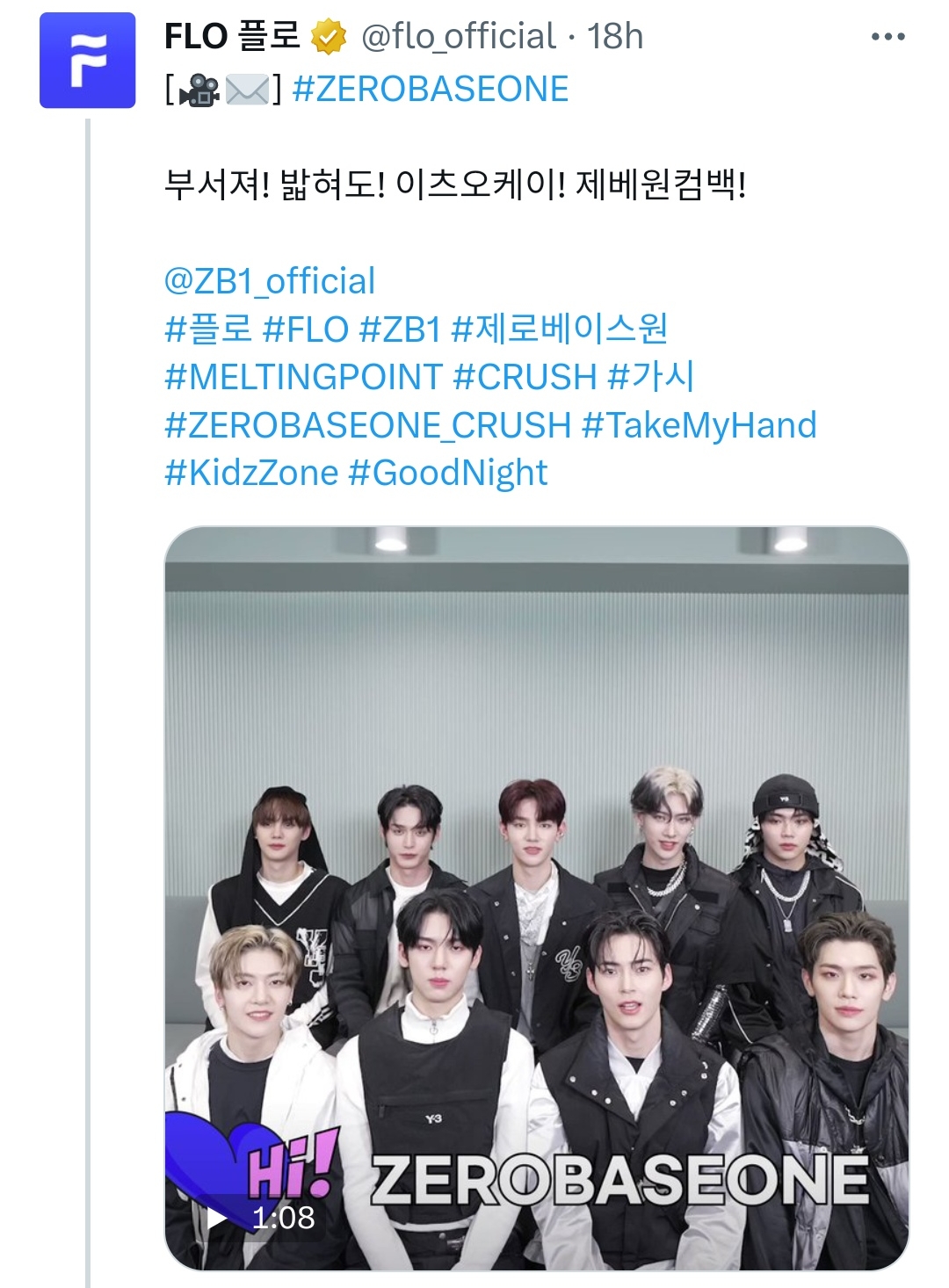#플로 #FLO #ZB1 #제로베이스원 #MELTINGPOINT #CRUSH #가시 #ZEROBASEONE_CRUSH #TakeMyHand #KidzZone #GoodNight