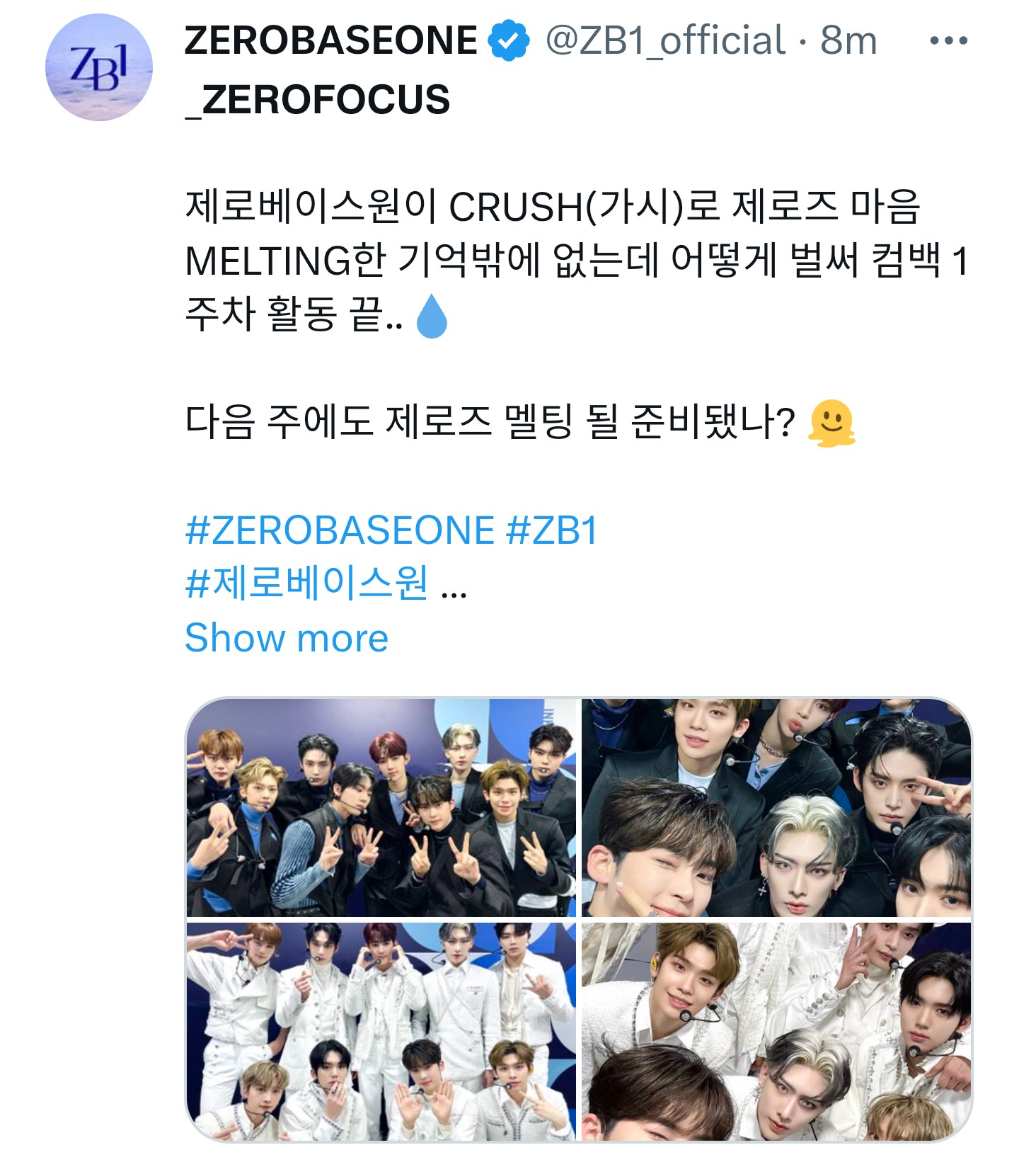 제로베이스원이 CRUSH(가시)로 제로즈 마음 MELTING한 기억밖에 없는데 어떻게 벌써 컴백 1주차 활동 끝..💧