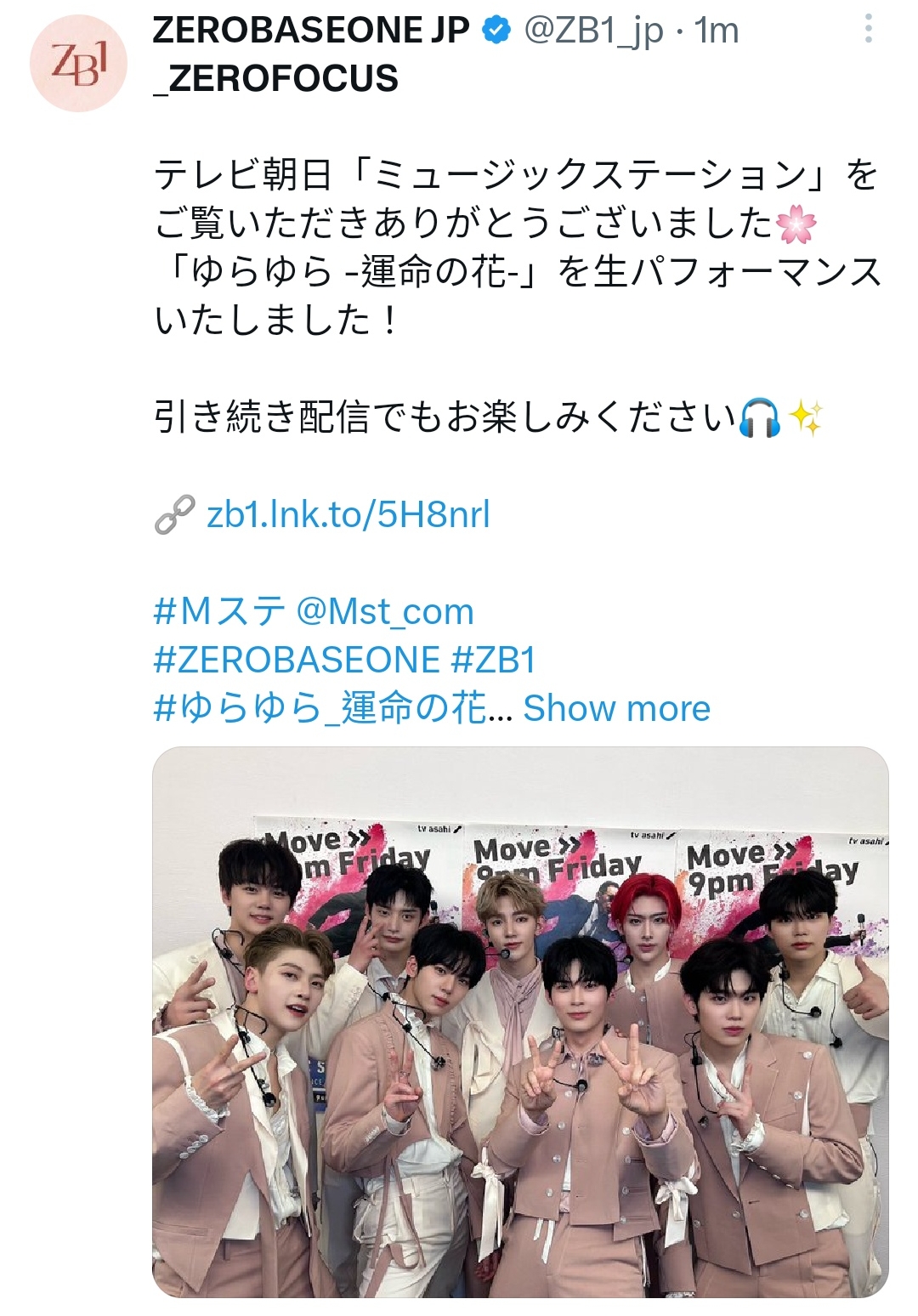 テレビ朝日「ミュージックステーション」をご覧いただきありがとうございました🌸