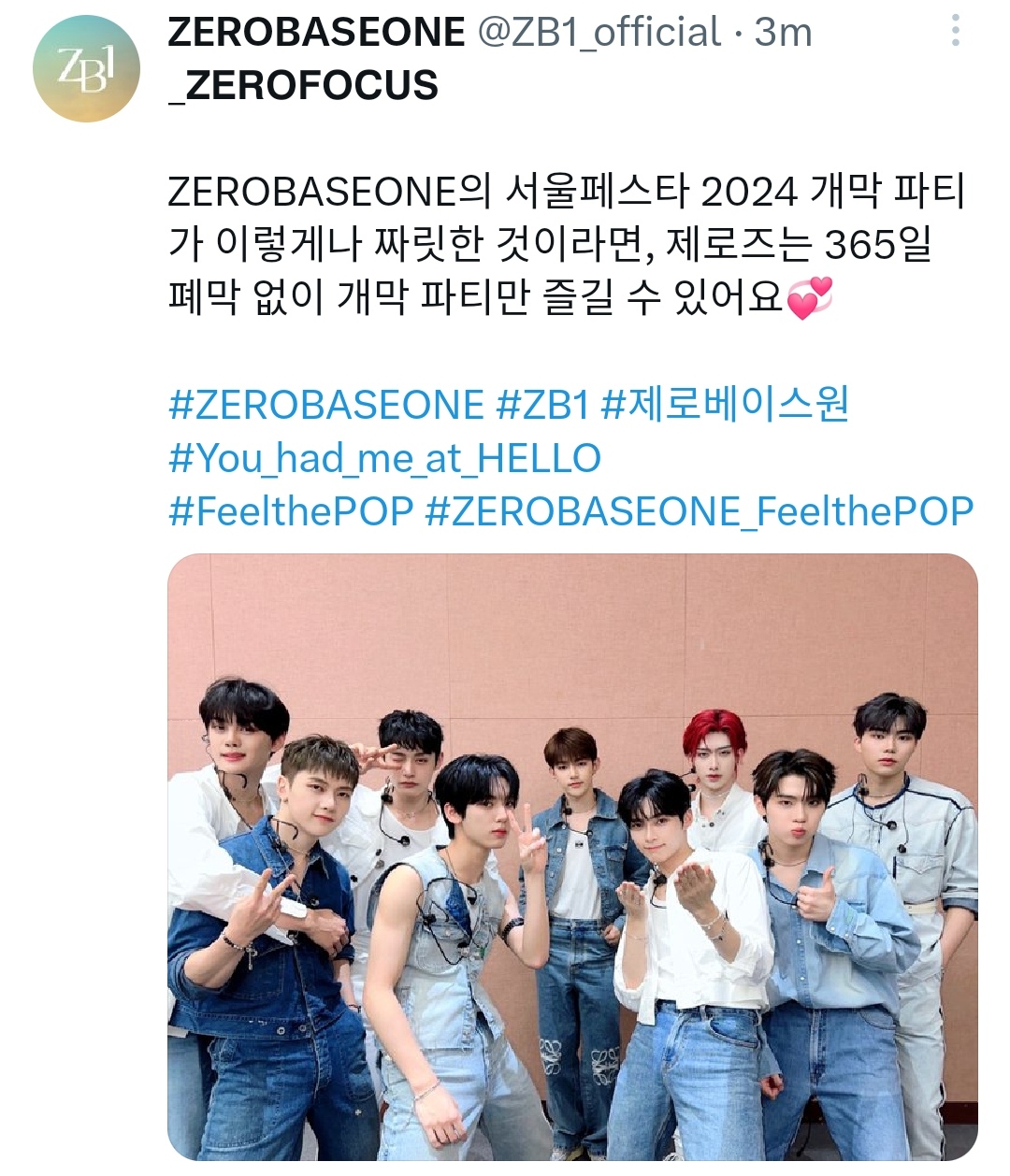 ZEROBASEONE의 서울페스타 2024 개막 파티가 이렇게나 짜릿한 것이라면, 제로즈는 365일 폐막 없이 개막 파티만 즐길 수 있어요💞