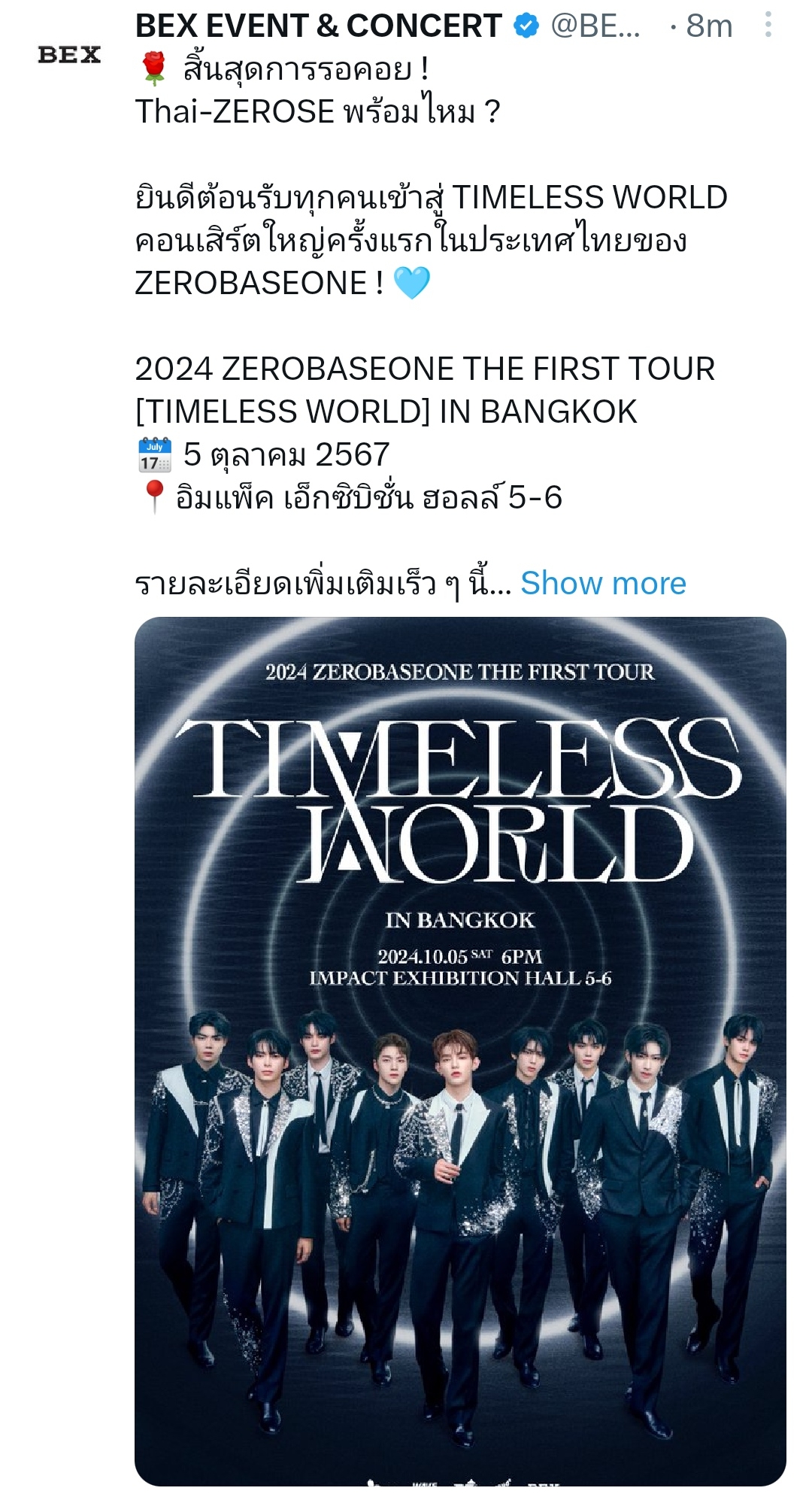 ยินดีต้อนรับทุกคนเข้าสู่ TIMELESS WORLD คอนเสิร์ตใหญ่ครั้งแรกในประเทศไทยของ ZEROBASEONE ! 🩵