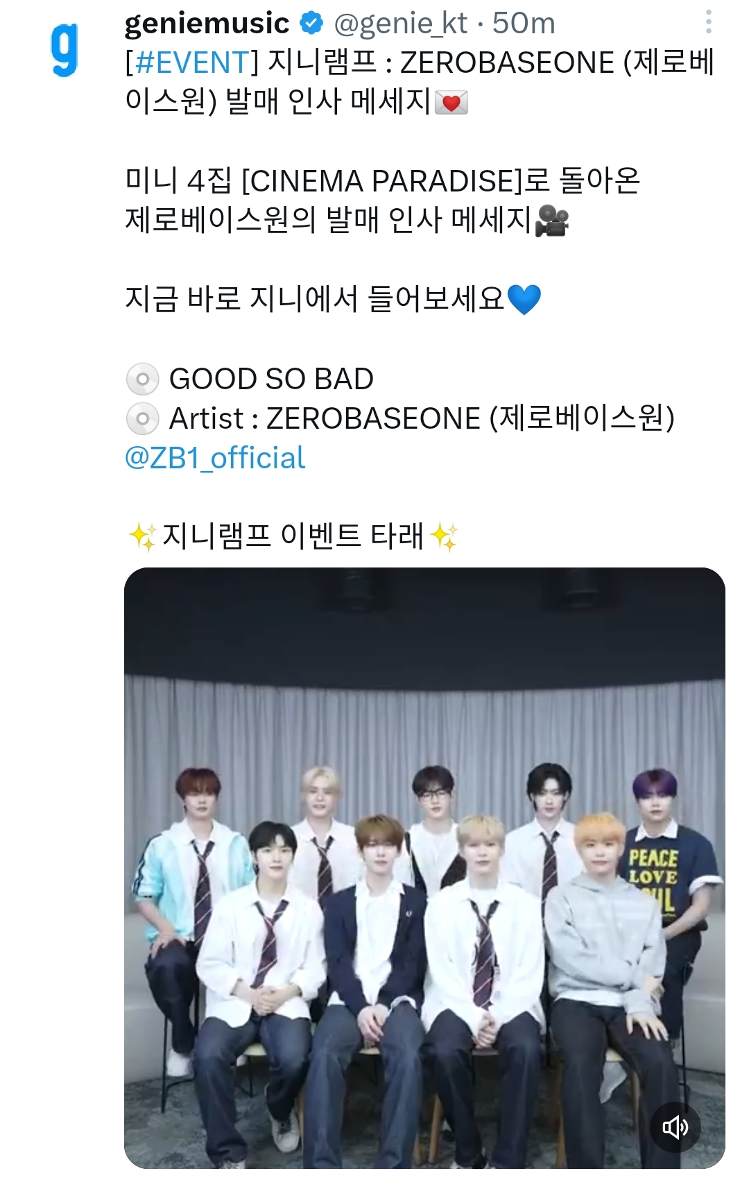 [#EVENT] 지니램프 : ZEROBASEONE (제로베이스원) 발매 인사 메세지💌
