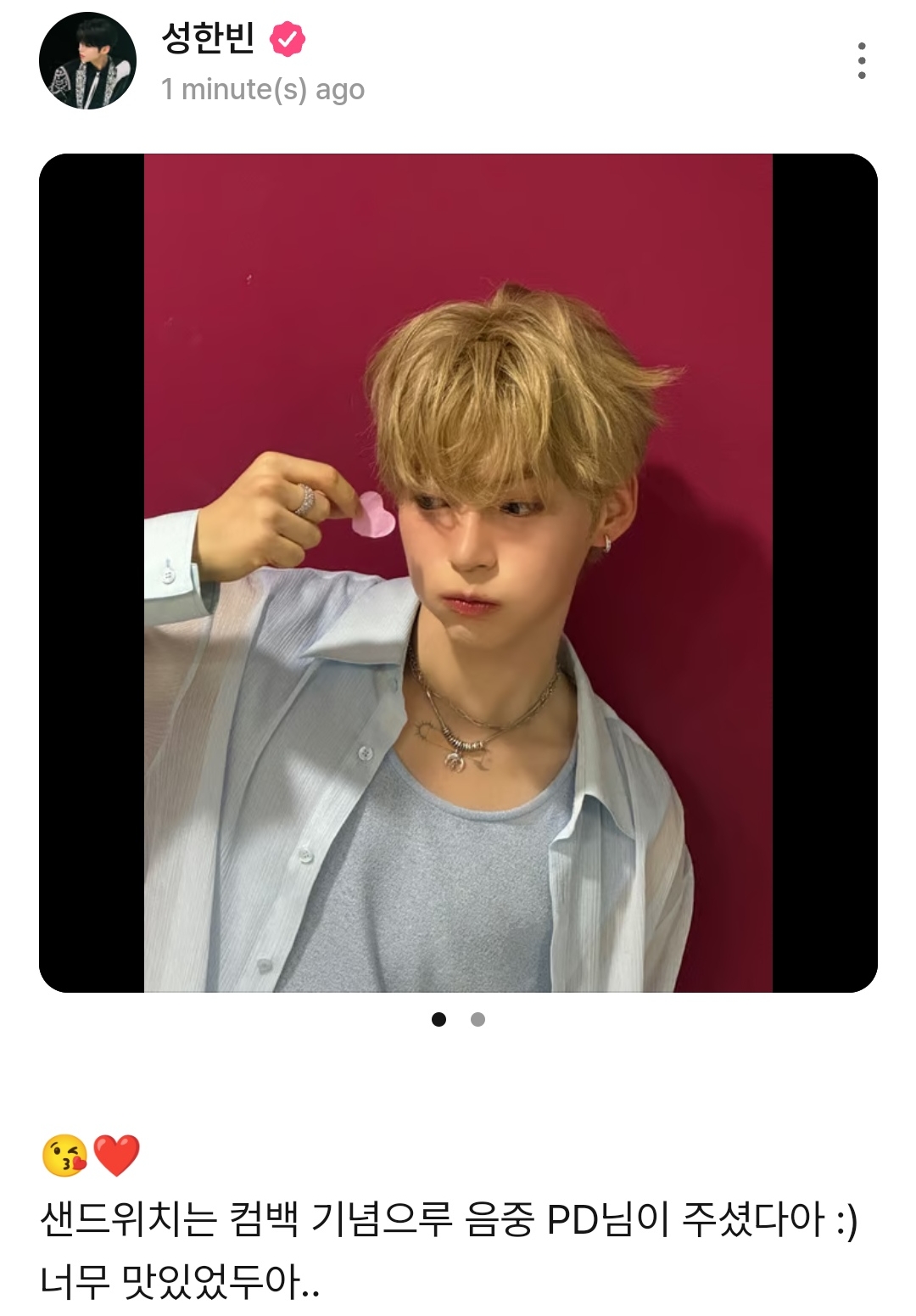 샌드위치는 컴백 기념으루 음중 PD님이 주셨다아 :)