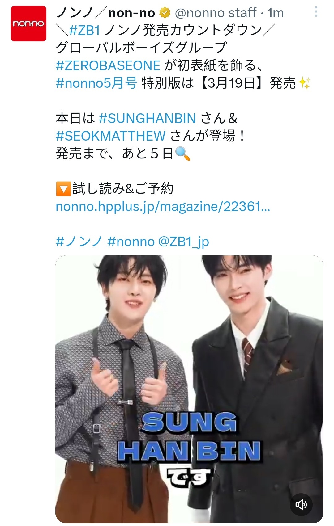 #ノンノ #nonno @ZB1_jp