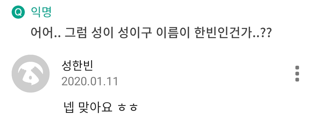 어어.. 그럼 성이 성이구 이름이 한빈인건가..??