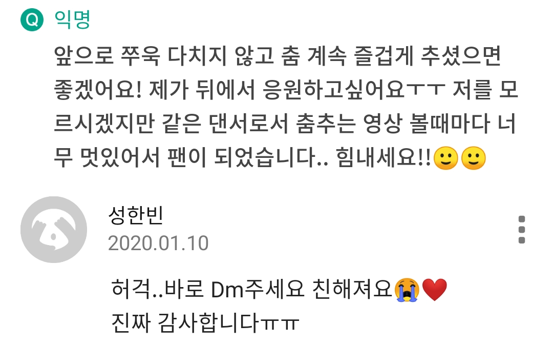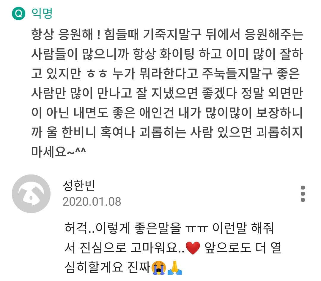 허걱..이렇게 좋은말을 ㅠㅠ 이런말 해줘서 진심으로 고마워요..❤️ 앞으로도 더 열심히할게요 진짜😭🙏