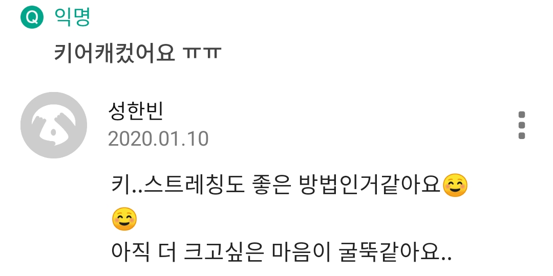 키..스트레칭도 좋은 방법인거같아요☺️☺️ 아직 더 크고싶은 마음이 굴뚝같아요..