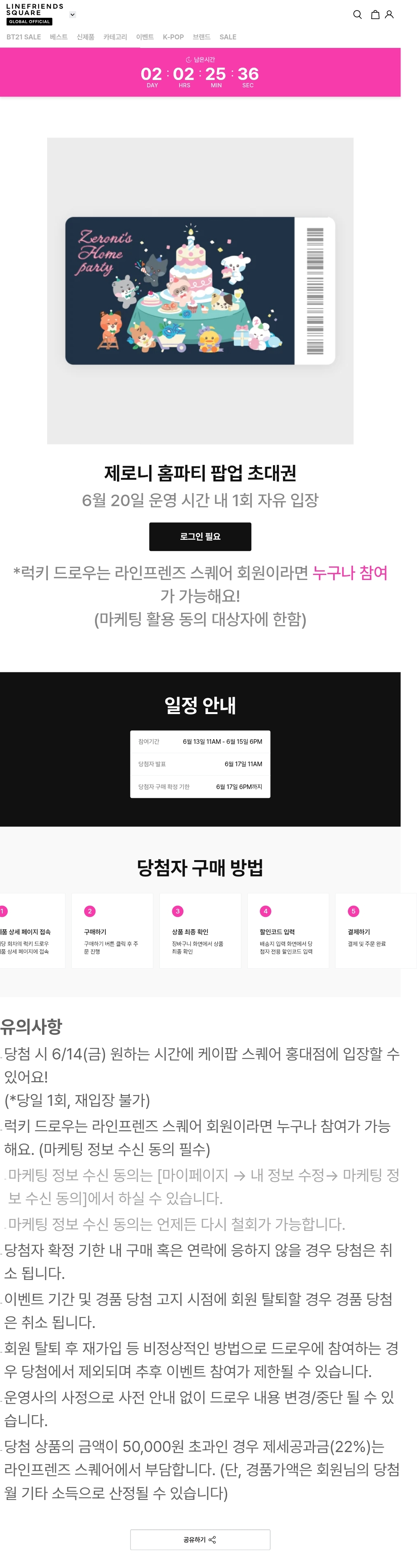 *럭키 드로우는 라인프렌즈 스퀘어 회원이라면 누구나 참여가 가능해요!