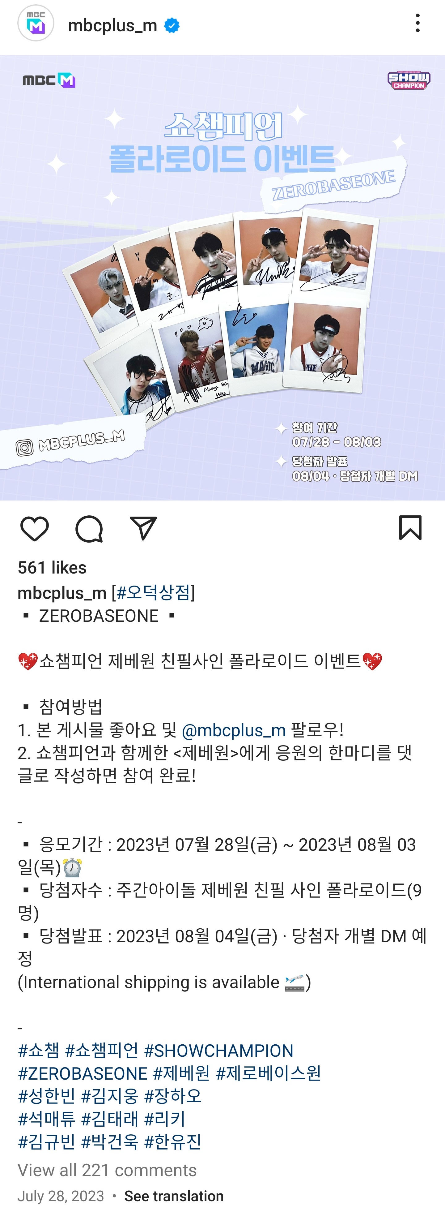 ▪︎ 당첨자수 : 주간아이돌 제베원 친필 사인 폴라로이드(9명)