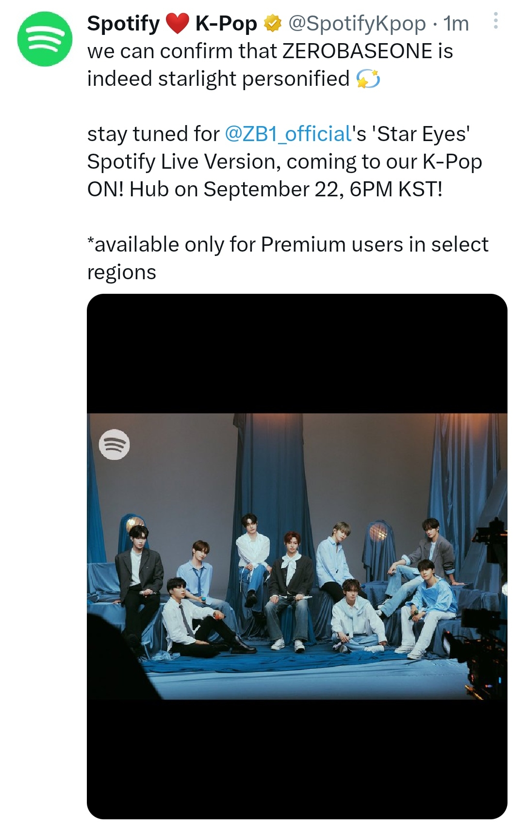 stay tuned for @ZB1_official's 'Star Eyes' Spotify Live Version, coming to our K-Pop ON! Hub on September 22, 6PM KST!