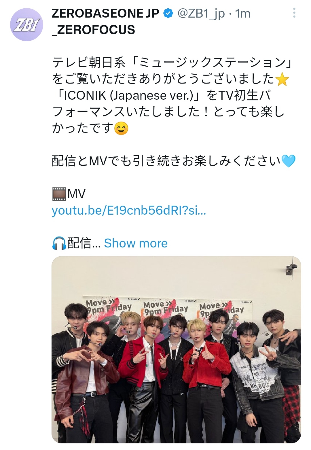 「ICONIK (Japanese ver.)」をTV初生パフォーマンスいたしました!とっても楽しかったです☺️
