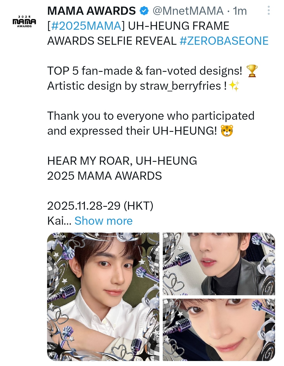 [#2025MAMA] UH-HEUNG FRAME AWARDS SELFIE REVEAL #ZEROBASEONE