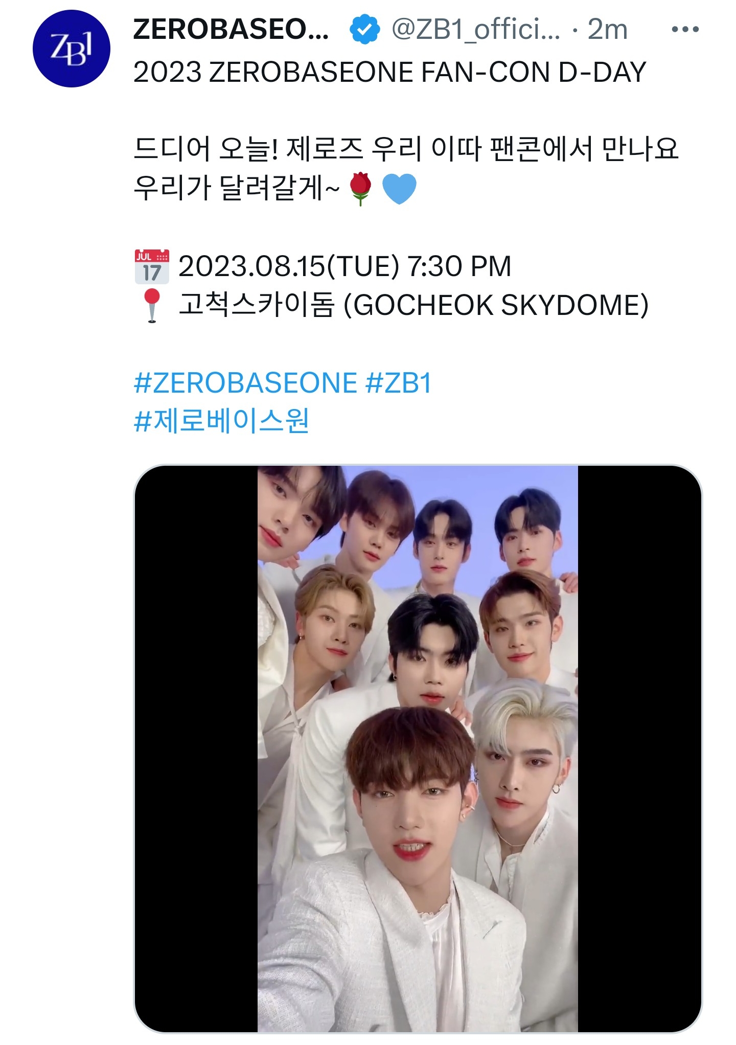드디어 오늘! 제로즈 우리 이따 팬콘에서 만나요 우리가 달려갈게~🌹💙